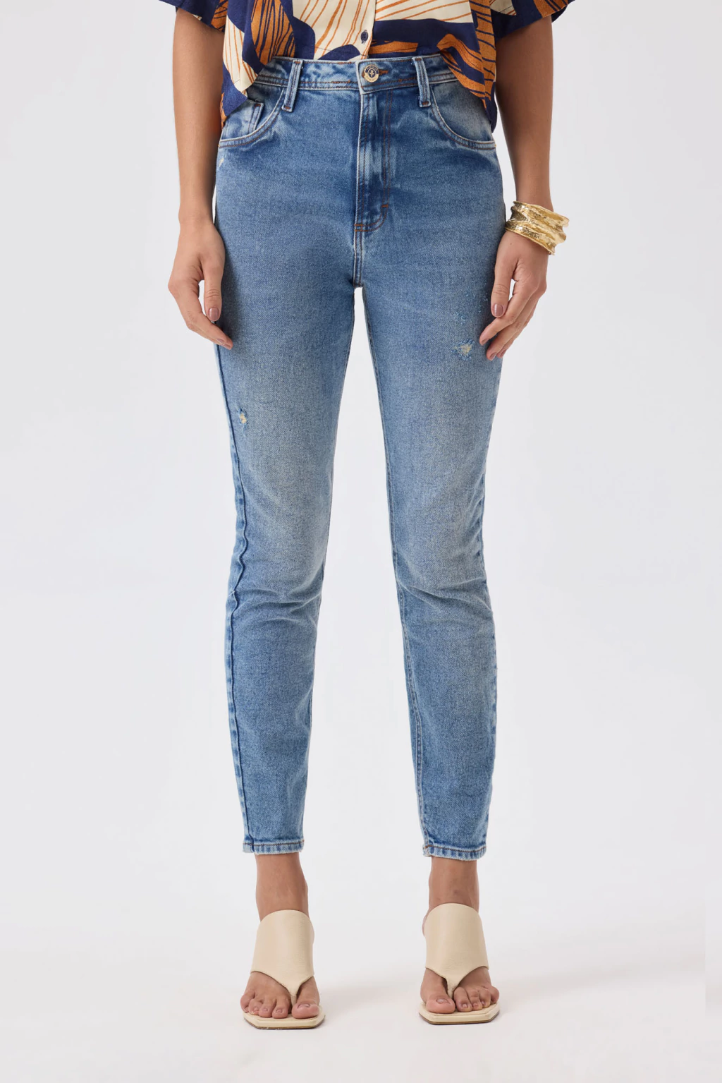 Calça Ágata jeans modelo cigarrette com lavagem clara e ajuste perfeito. Conforto e estilo para o dia a dia com toque moderno e versátil. Ideal para combinações casuais e elegantes.