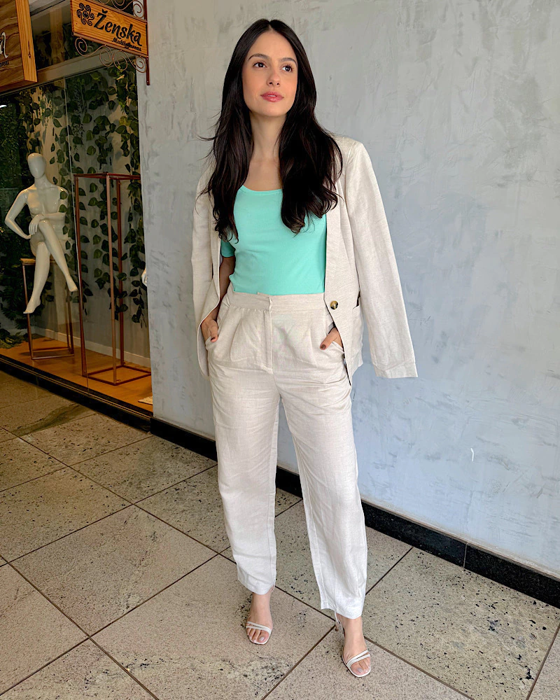 Design Versátil para Todos os Estilos Com um corte que valoriza a silhueta feminina, a Calça Linho Natural é a escolha certa para compor looks que vão do escritório ao happy hour. Combine facilmente com blazers para um visual sofisticado e elegante, ou com camisetas e sandálias para uma produção mais despojada e contemporânea.